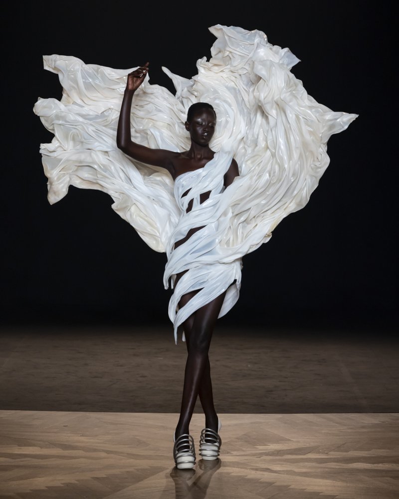 Van Herpen further explored the possibilities of future-facing materials with silhouettes shaped from lab-grown textiles. Minimalist bridal pieces and sculptural forms crafted from Brewed Protein™ hinted at a path where sustainability and luxury are not opposing forces but natural allies.